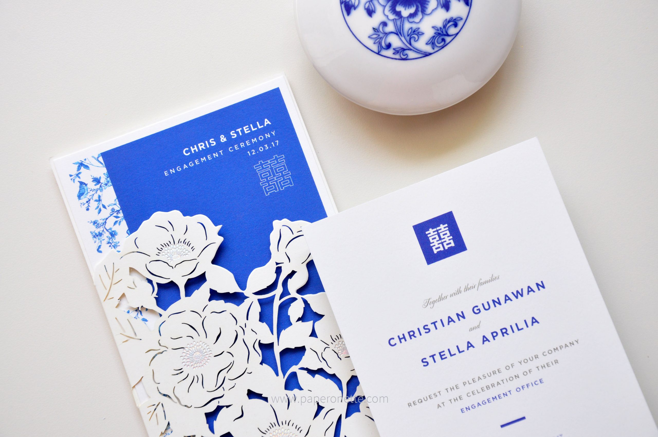 Touch of Chinoiserie pattern to bring an oriental and contemporary look for semi-traditional Chinese engagement ceremony.