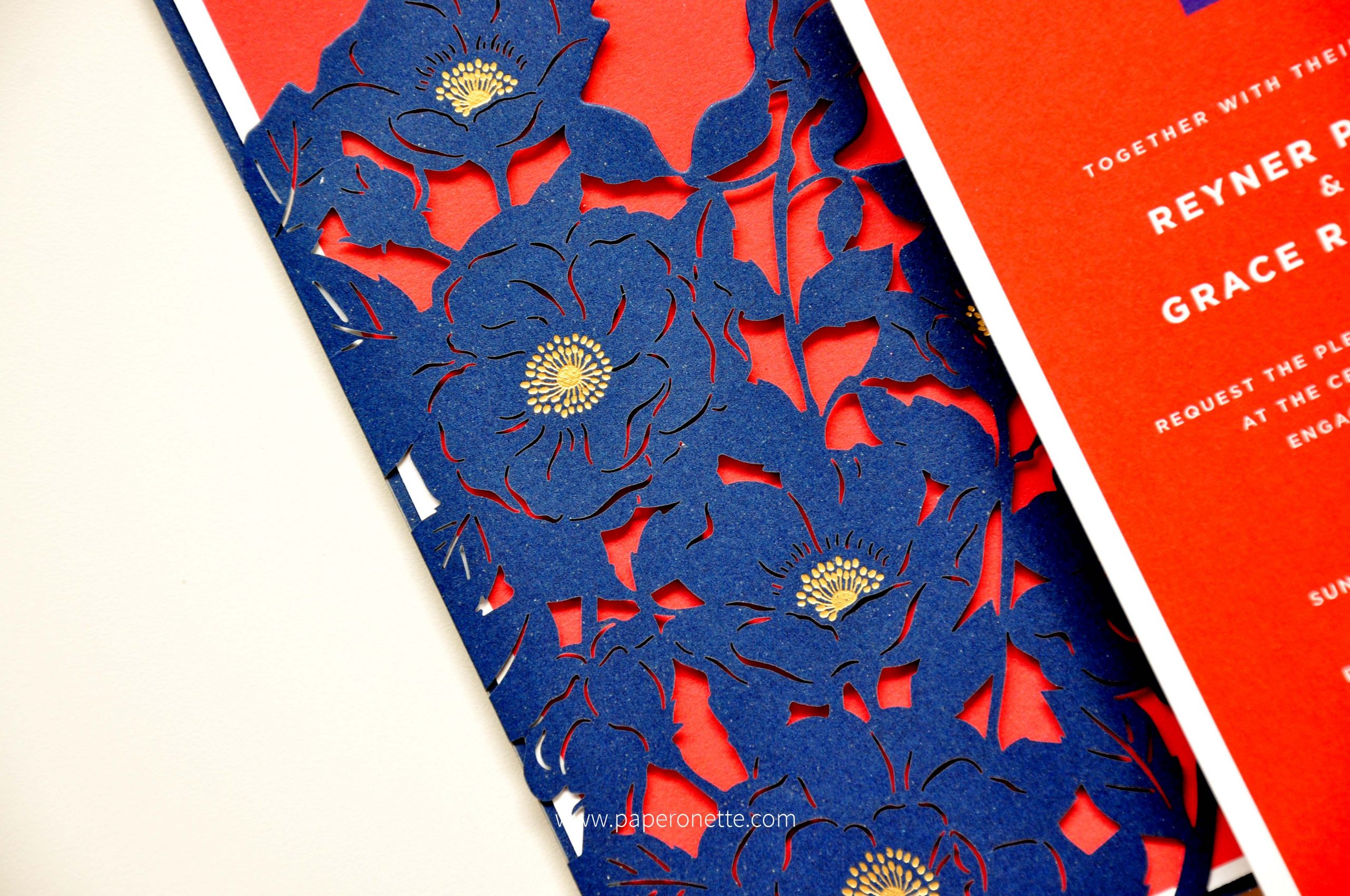 - Set Items: Invitation, Laser cut pocket, Envelope